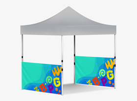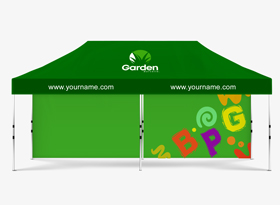 Ful-colour dye-sublimated Custom Canopy Tents 15’ x 10’ are a wonderful way to build branding environments in street festivals, trade shows, exhibitions, sales promotional events or other similar occasions. Canopy tents are made of 600D Polyester that is durable, weatherproof, fire-redundant, and long-lasting. The product comes with a commercial-grade Aluminum frame that is lightweight and quick to assemble. A variety of side bar, full-wall and half-wall options are available. You may also ask for a carrying case with wheels, sand bags and flag mounts. Shop at wholesale prices!