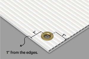 Choose from various Grommet options to match your clients’ needs. Our Grommets are .75” metal rings. Standard Grommet placement is 1" on the centre from the edge.